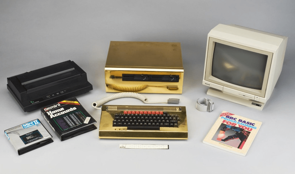 Figure 4. A Prize Gold-Plated BBC Micro for the accompanying magazine, 1985.