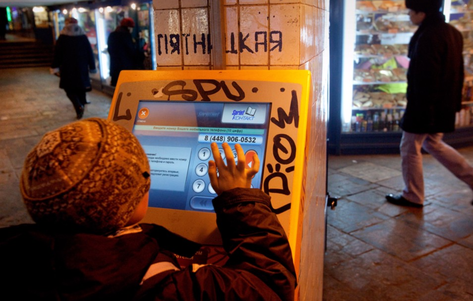 Figure 6. A child recharges their mobile phone credit on a street machine, 2009.